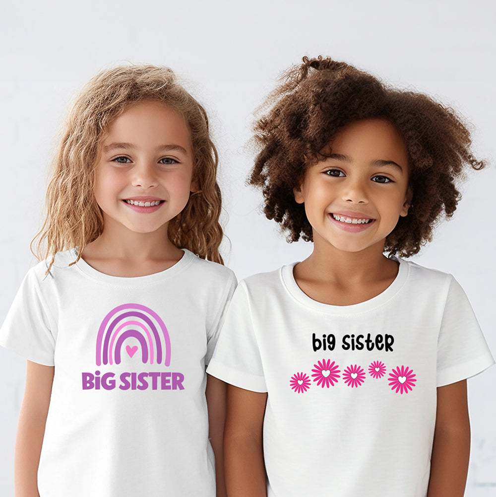 Make your sibling bond shine with these personalized Big Sister and Little Sister shirts! These personalized sibling shirts are a heartfelt way to celebrate the unbreakable bond between big and little sisters. Whether you opt for matching designs or complementary styles, these custom tees will become a cherished keepsake that reminds you of your lifelong connection. These personalized shirts make a thoughtful gift for birthdays, holidays, or just because - a tangible symbol of the unique sibling relationship you share.