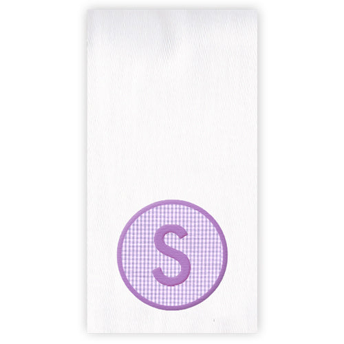 Gingham fabric is timeless! Embroider baby's initial against our lavender gingham fabric with dark lavender thread.